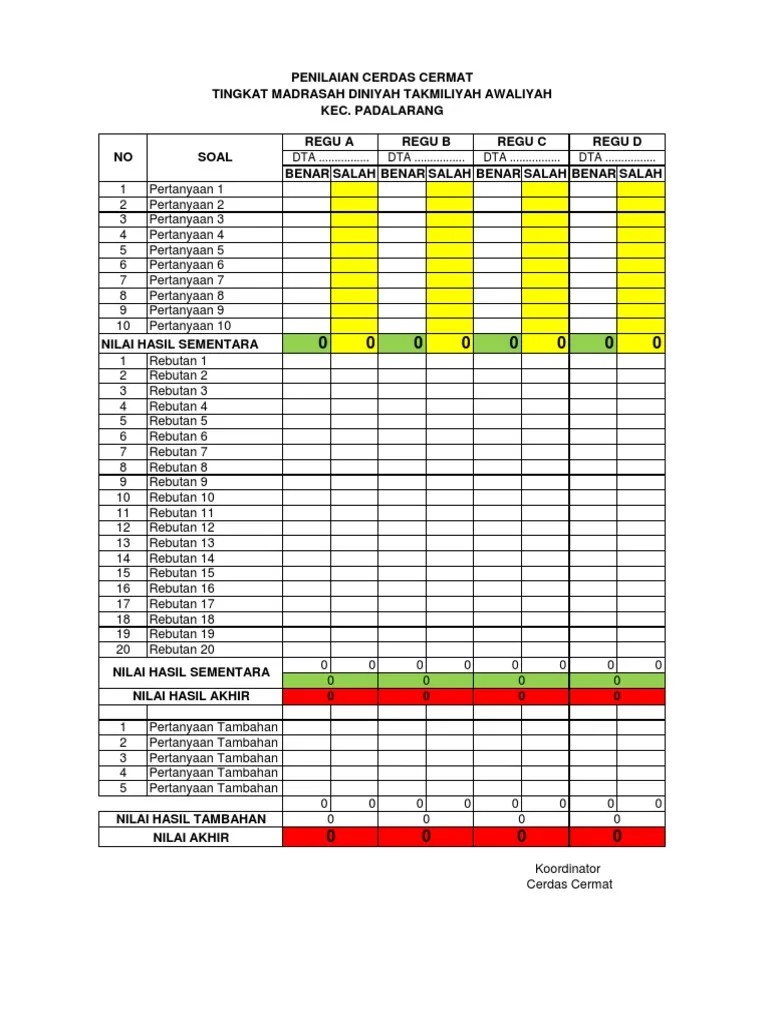 Format Penilaian Cerdas Cermat Agama : Format Penilaian Dewan Juri Lomba Nasyid - Yang dibutuhkan untuk melaksanakan lomba cerdas cermat (lcc) tingkat.. Sistem penilaian mutlak berada di tangan dewan juri. Lomba cerdas cermat pai (lcp) dibagi dalam tiga tahap, . Format penilaian lomba cerdas cermat. Ketentuan lebih lanjut tentang teknis pelaksanaan cerdas cermat islam (cci) akan. Pekan keterampilan dan seni pendidikan agama islam (pentas pai) nasional viii tahun 2017.