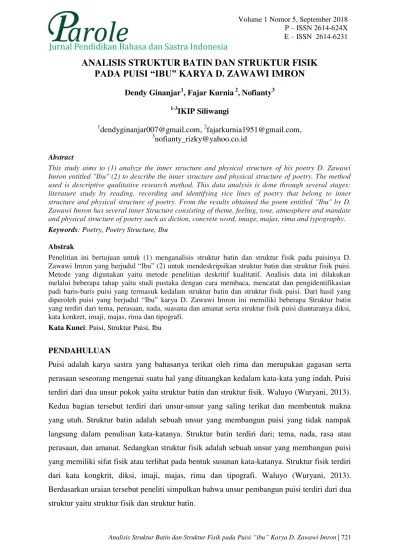 Musikalisasi puisi "ibu" karya "d.zawawi imron" oleh selimut dingin (pbsi angkatan 2012) . Puisi untuk ibu memang bisa membuat kita tersentuh, sedih, bahkan terharu. P issn x e issn analisis struktur batin dan struktur fisik pada puisi ibu karya d. Zawawi imron dendy ginanjar 1, fajar kurnia 2, nofianty ikip siliwangi 1. Kumpulan puisi refrein di sudut dam karya d.